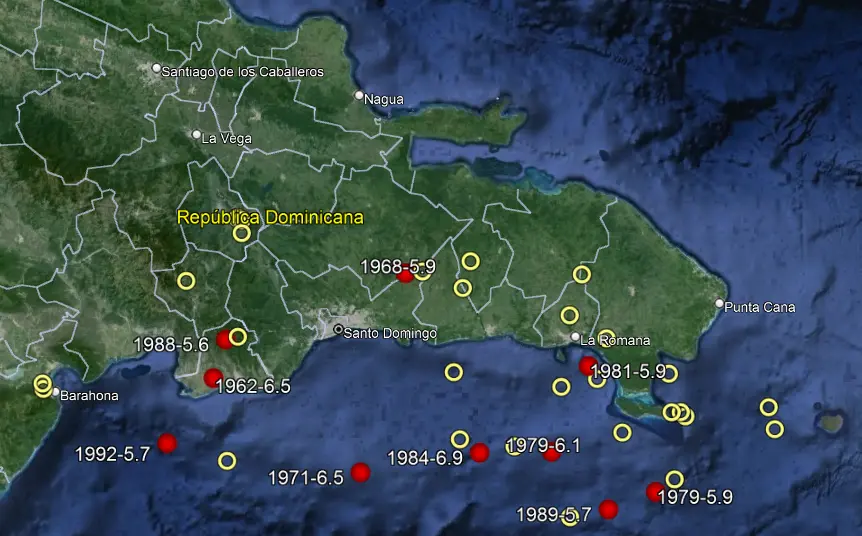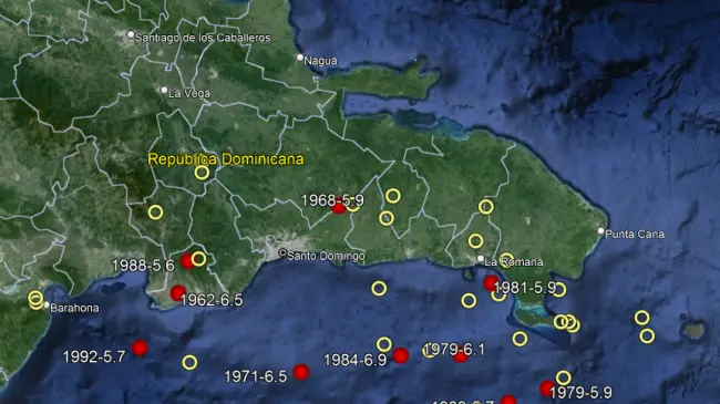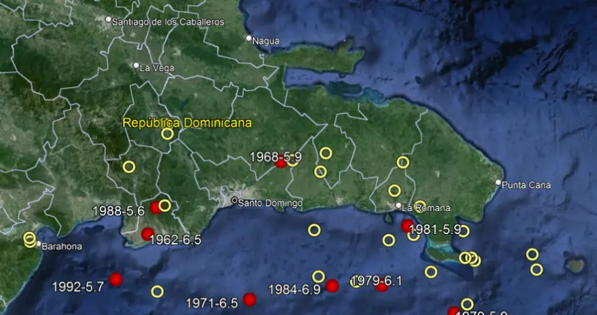 Señala que en 2024 se cumplen 53 años del terremoto de 1971, que alcanzó una magnitud de 6.5 grados y cuyo epicentro se ubicó al sur de Santo Domingo, causando daños estructurales significativos en la capital. Además, se cumplen 40 años del terremoto de 1984, con una magnitud de 6.9 grados, que afectó severamente a San Pedro de Macorís y provocó un ligero tsunami.