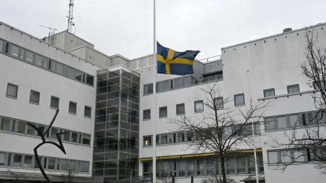 Las banderas ondean a media asta en señal de duelo en el ayuntamiento de Örebro, el Palacio Real de Estocolmo, el Parlamento y la sede del Gobierno sueco.