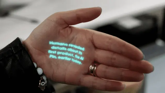 Pese a no contar con una pantalla tradicional de un teléfono inteligente, el pin puede proyectar texto, que el usuario puede ver en su palma de la mano cuando la pone delante del aparato.