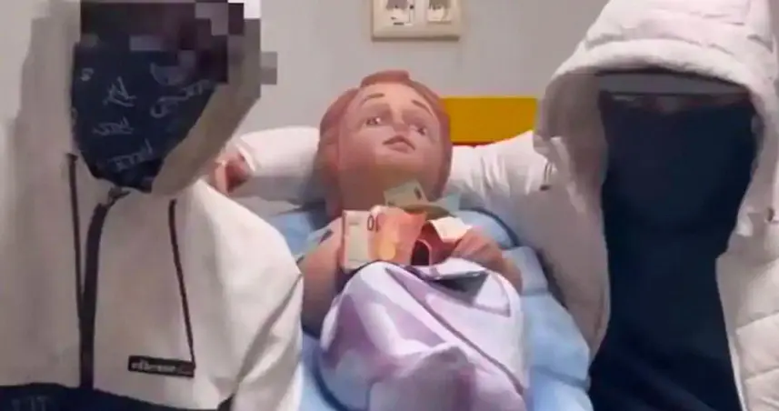 En el video, publicado en la red social TikTok, los jóvenes aparecen junto a la figura con los rostros cubiertos con balaclava sentados en una cama. Los 'secuestradores' aseguran que la Policía "no cuida bien al niño Jesús" y amenazan con "hacerle daño" si no reciben pronto el dinero.