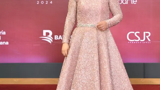 Expresidenta de Acroarte Emelyn Baldera viste de Leonel Lirio para la alfombra de los Premios Soberanos