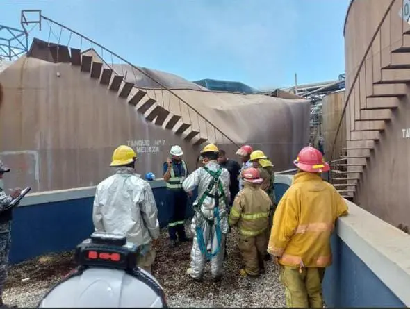 Tras varias horas de intensa búsqueda, los rescatistas localizaron los cuerpos sin vida de las dos personas que estaban dentro del tanque de Vinaza cuando implosionó próximo al medio día mientras ellos realizaban trabajo de soldadura.