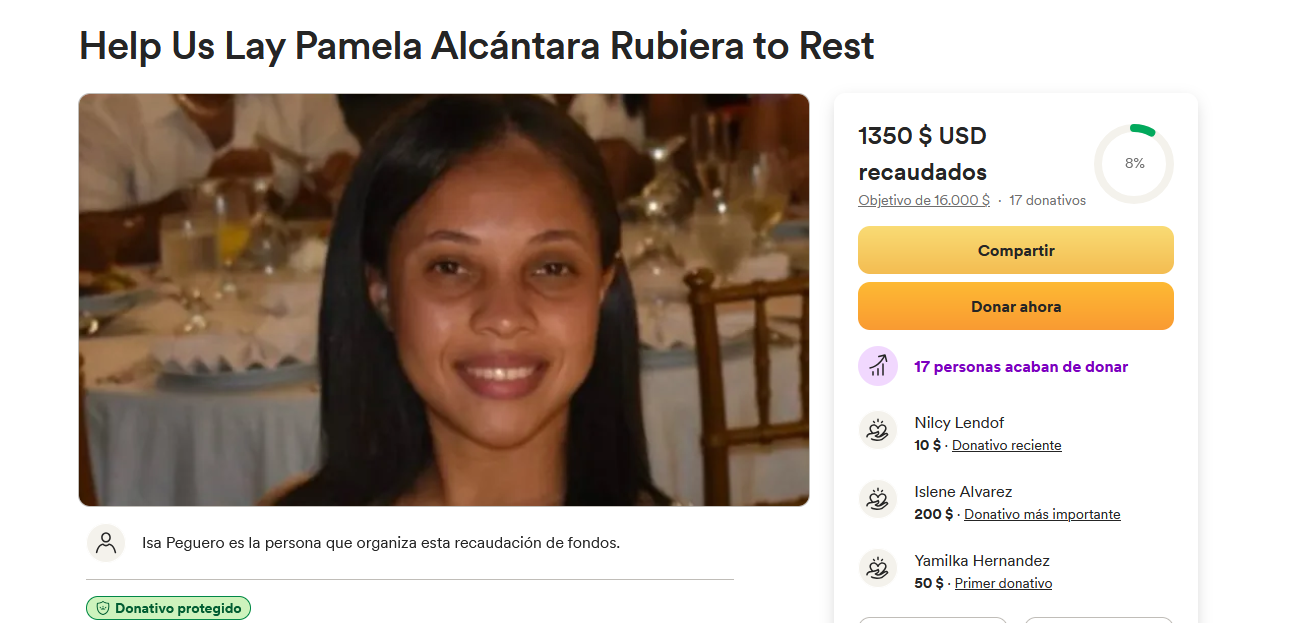Para donar puede ingresar al siguiente link: https://www.gofundme.com/f/help-us-lay-pamela-alcantara-rubiera-to-rest?qid=99bef965ec461d74482ae60392c4e0db