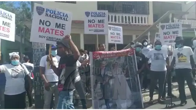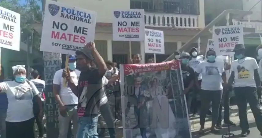 SAN CRISTÓBAL.- Previo al inicio de la audiencia de conocimiento de medida de coerción contra el coronel César Mariñez Lora, los familiares y allegados de Joel Díaz y Eliza Muñoz, la pareja de predicadores ultimados por una patrulla policial en Villa Altagracia, vociferan consignas en las afueras del Palacio de Justicia de la localidad.