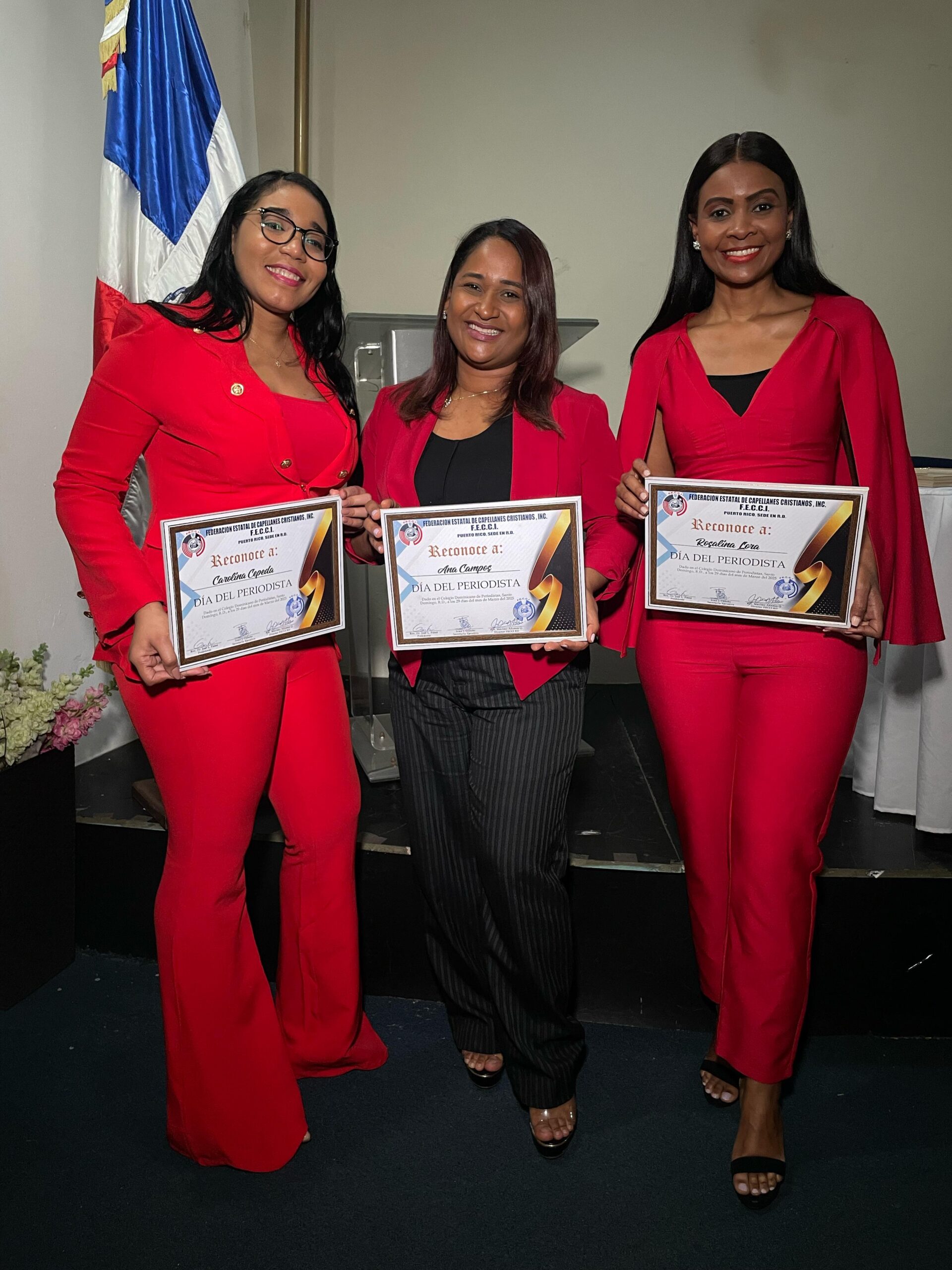 Santo Domingo.– Santo Domingo.-Decenas de periodistas fueron reconocidos por su labor este sábado por la Federación Estatal de Capellanes Cristianos Internacionales, entre ellos varias compañeras del Grupo SIN, en el marco de la celebración del Día Nacional del Periodista.