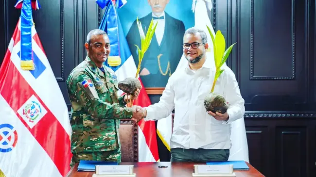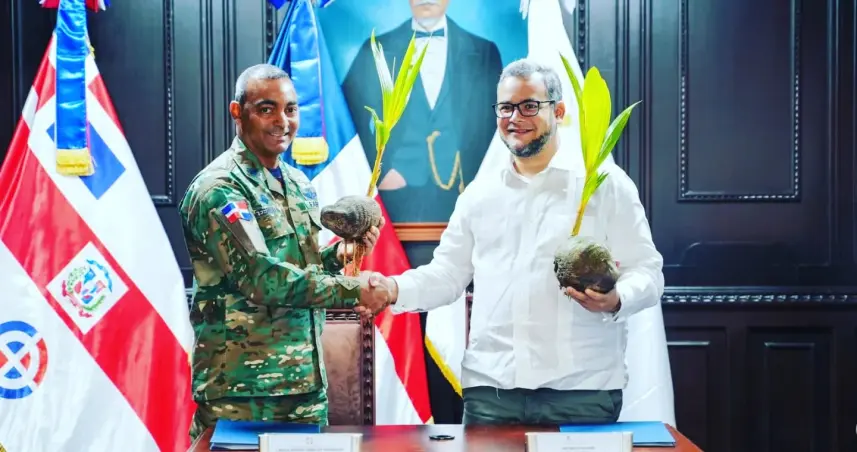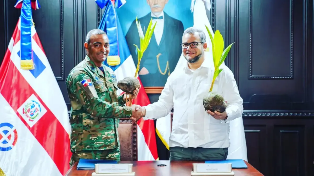El acuerdo incluye la donación de miles de matas de coco, de las que ya el FEDA entregó las primeras 2 mil, que servirán para sembrar en las instalaciones de la Base Aérea de San Isidro.