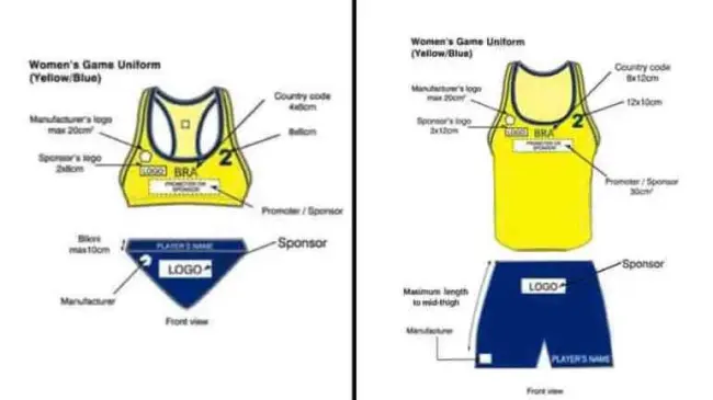 La norma número 4, antes de esta modificación, era la siguiente: "Las mujeres deben usar un bikini donde la parte superior debe ser un sostén deportivo ajustado con aberturas en los brazos. La parte inferior no debe tener más de diez centímetros en los lados".