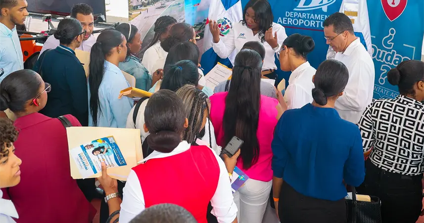 Santo Domingo.– El Departamento Aeroportuario (DA), se sumó este viernes a la celebración de la cuarta Feria de Empleos del sector aeronáutico, en la que orientó a decenas de jóvenes participantes sobre el rol de la institución y recibió sus hojas de vidas para las vacantes disponibles.