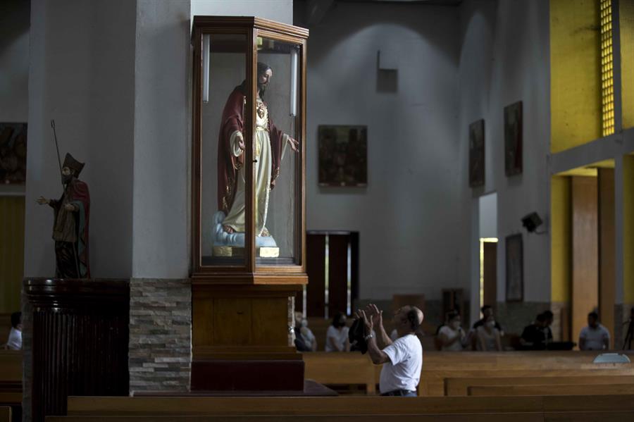 MANAGUA.- Files católicos de Nicaragua rompieron este domingo la cuarentena mantenida de forma voluntaria por la COVID-19, para acudir a rezar en diferentes templos del país, como acto de desagravio por el incendio parcial en la Catedral Metropolitana de Managua, que calcinó una histórica imagen de la Sangre de Cristo, y que la Iglesia calificó de «acto terrorista» en su contra.