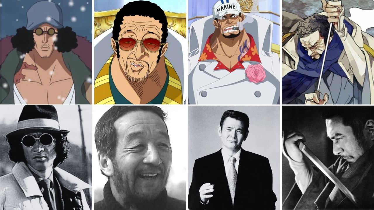 Los más fáciles de reconocer son los Almirantes de la Marina, inspirados en actores japoneses Yusaku Matsuda homenajeado por Oda con el Almirante Aokiji; asimismo Kizaru que fue inspirado en Kunie Tanaka; Akainu en Bunta Sugawara; y Fujitora en Shintaro Katsu.