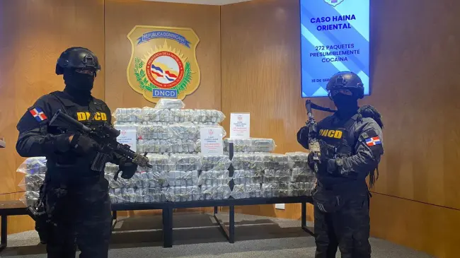 SANTO DOMINGO.- La Dirección Nacional de Control de Drogas (DNCD) con apoyo del Cuerpo Especializado de Seguridad Portuaria, agencias de inteligencia y bajo la coordinación del Ministerio Público, confiscaron 272 paquetes presumiblemente cocaína en un operativo de interdicción realizado en el Puerto de Haina Oriental, municipio Santo Domingo Oeste.