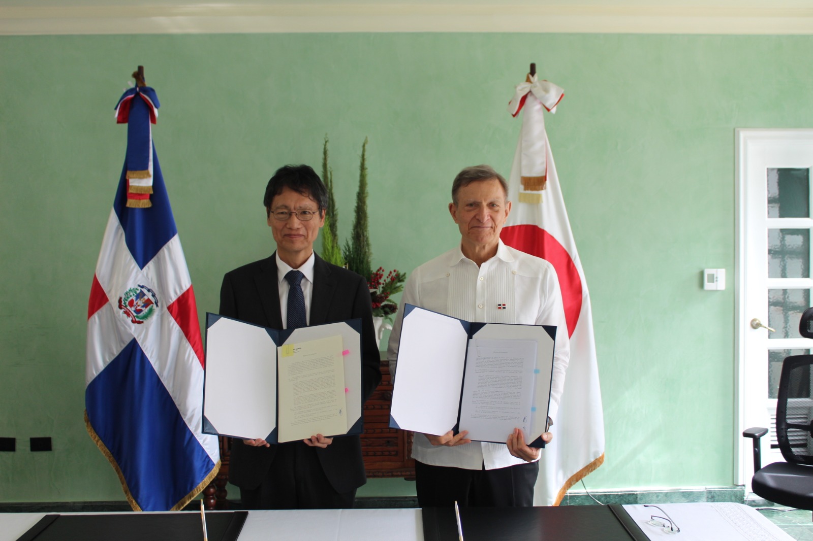 La firma de este instrumento estuvo a cargo del Embajador del Japón en la República Dominicana, TAKAGI Masahiro, y el Ministro de Relaciones Exteriores de la República Dominicana, Roberto Álvarez. Con esta donación, el Programa Nacional de Limpieza de Playas y Balnearios del Ministerio de Turismo dominicano podrá adquirir maquinarias y equipos para limpiar las playas de 9 provincias del país: San Cristóbal, Azua, Barahona, San Pedro de Macorís, La Altagracia, El Seibo, María Trinidad Sánchez, Samaná y Puerto Plata.
