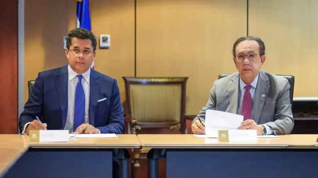 SANTO DOMINGO.- El ministro de Turismo de la República Dominicana, David Collado, y el gobernador del Banco Central de la República Dominicana (BCRD), Héctor Valdez Albizu, firmaron este miércoles un memorando de entendimiento que establece un marco de cooperación para el intercambio de información entre ambas instituciones, dirigido a cuantificar y a mejorar los esfuerzos para la captación de turistas procedentes de mercados potenciales de todo el mundo.