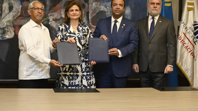 Santo Domingo. - El Banco de Reservas y el Ministerio de Educación firmaron un acuerdo para ofrecer educación financiera a niños y adolescentes del sistema educativo de República Dominicana, en un acto encabezado por la vicepresidenta de la República, Raquel Peña, con el objetivo de promover los beneficios de la bancarización y una cultura del manejo responsable del dinero.