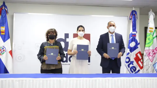 El convenio fue firmado por el presidente del Indotel, Nelson Arroyo, la presidenta ejecutiva del CONANI Ana Cecilia Morun Solano, y en calidad de testigo la primera dama y presidenta del Gabinete de Niñez y Adolescencia (GANA-RD), Raquel Arbaje.