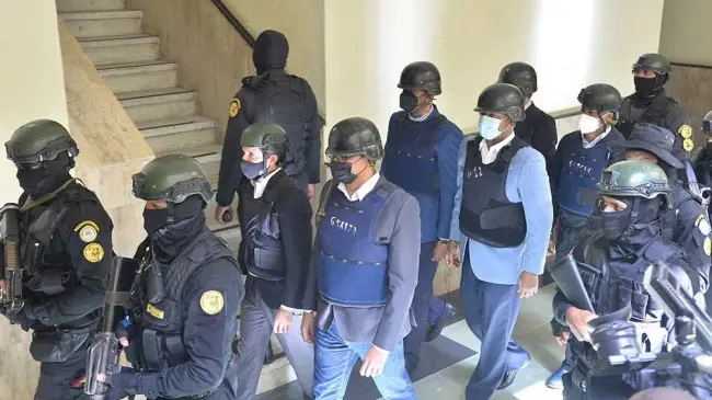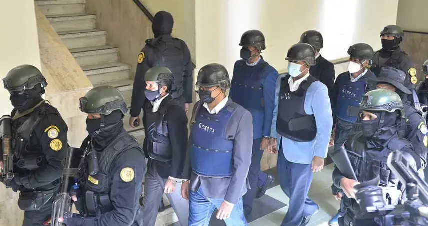 Se trata de los generales Boanerges Reyes Batista (ARD) y a Juan Carlos Torres Robiou (FARD), así como al mayor José Manuel Rosario Pirón (PN), al capitán de navío Franklin Antonio Mata Flores (ARD) y al coronel Yehudy Blandesmil Guzmán Alcántara, a quienes se les impuso la prisión preventiva por 18 meses a cumplir en el referido centro.
