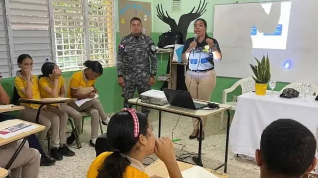 SANTIAGO.- La Fiscalía de Santiago y el Departamento de Trata y Tráfico de Personas de la Policía Nacional, ofrecieron una charla con la finalidad de orientar sobre los riesgos de la trata de personas, dirigida a estudiantes del Liceo José Antonio Paulino en el distrito municipal Pedro García, en Santiago.