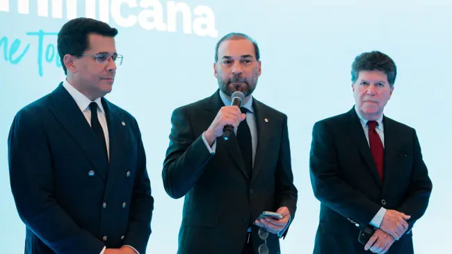 Junto a Omar Cepeda, presidente de ADERES, en esta presentación estuvieron presentes el Ministro de Turismo, David Collado; Guillermo León, Presidente de La Aurora; el Chef Saverio Stassi; y Luis Ros, Presidente de la Academia Dominicana de Gastronomía.