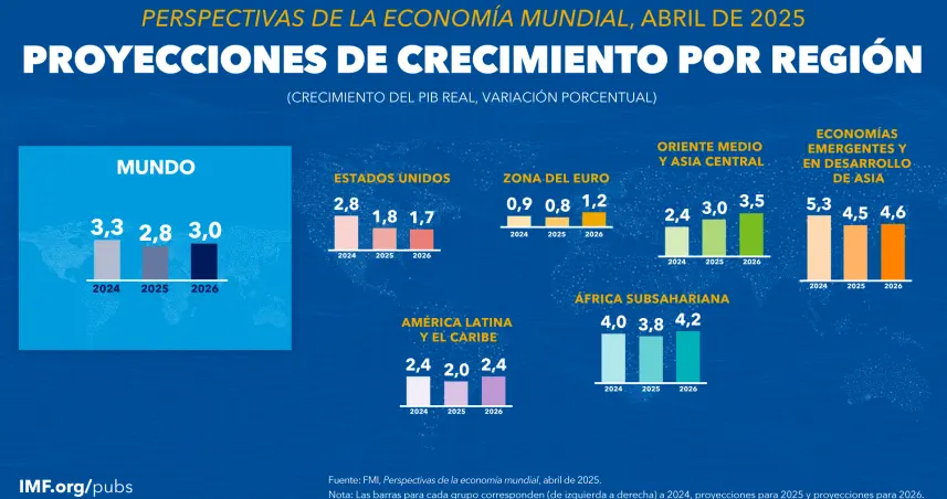 El FMI baja medio punto su previsión de crecimiento de Latinoamérica en 2025, hasta el 2 %