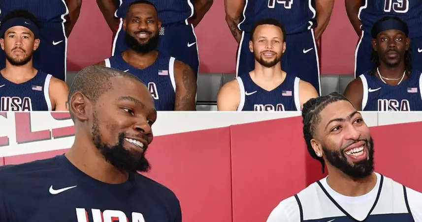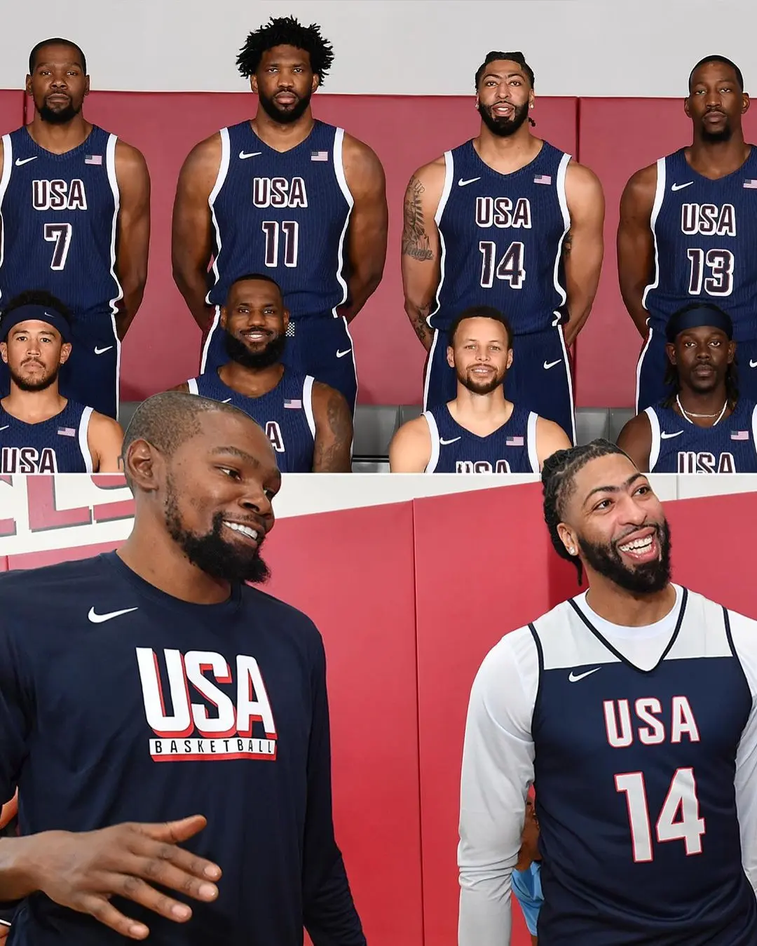 En la imagen que muestra a los cuatro jugadores más altos de la selección estadounidense (USA Basketball), Joel Embiid es el más alto, seguido por Kevin Durant, Davis y Adebayo.