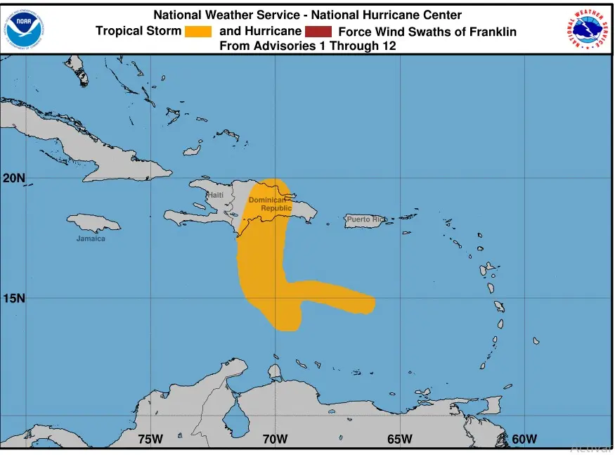 Franklin disminuye vientos y se encuentra al norte de RD