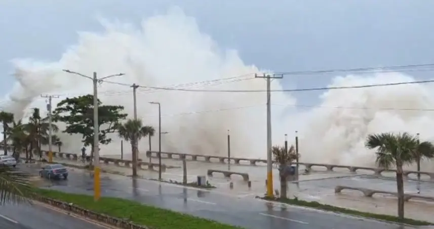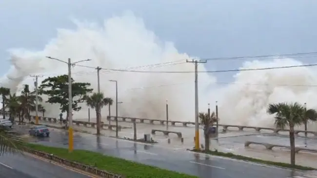 Fuerte oleaje se mantiene en el Malecón de Santo Domingo por efectos del huracán Beryl