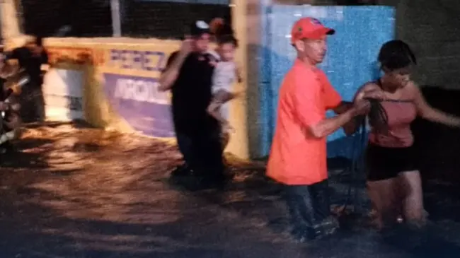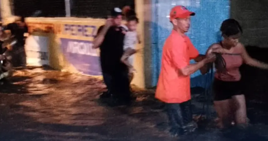 Las fuertes lluvias de esta tarde han provocado que cientos de viviendas se encuentren bajo el agua, poniendo en riesgo la vida y seguridad de sus habitantes. Algunas fotografías muestran cómo la Defensa Civil acompaña a madres con sus bebés, que tuvieron que abandonar sus hogares, por las inundaciones.