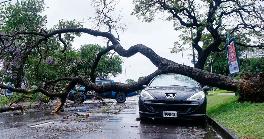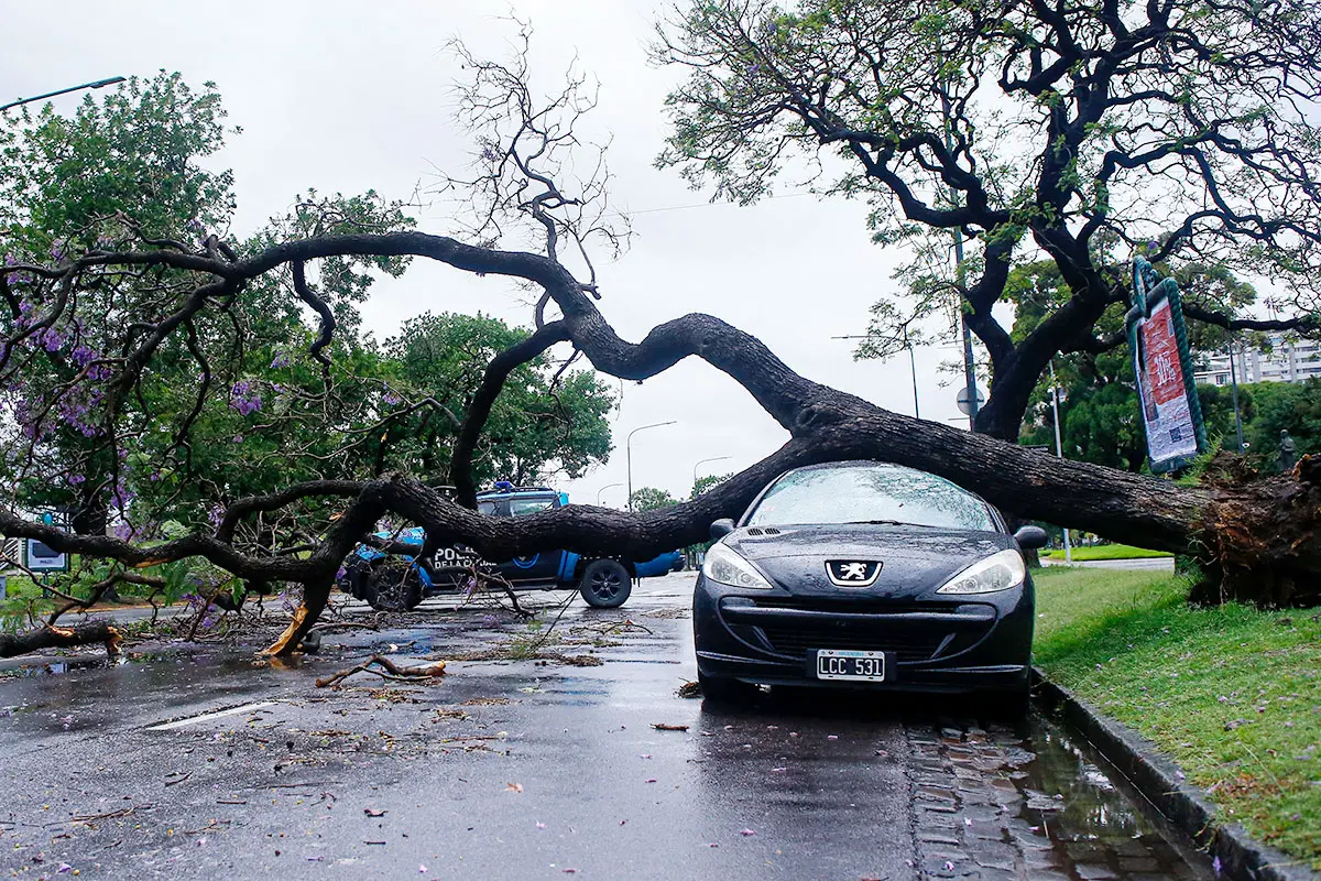 Calles intransitables por la caída de postes de alumbrado público y árboles, escombros y chapas de techos y carteles volados por los fuertes vientos, vehículos aplastados y otros daños a la infraestructura pública y las viviendas particulares es la postal que se repite en numerosas localidades de la populosa área metropolitana de Buenos Aires.