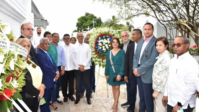 El acto que concentró un gran número de personas, se llevó a cabo en el cementerio ornamental, en honor al laureado escritor nacido en La Vega.