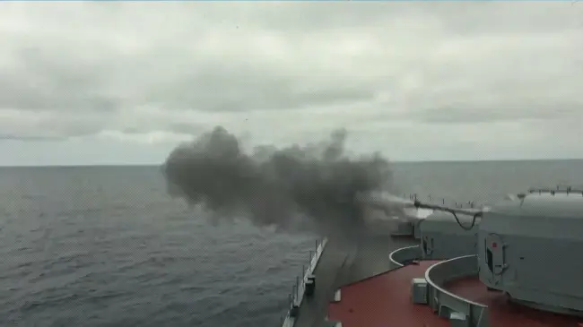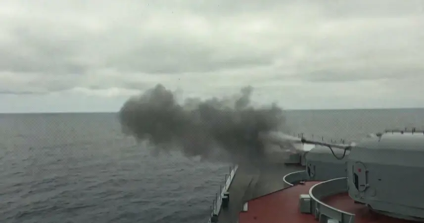 La escuadra rusa, integrada los buques cazasubmarinos "Admiral Tributs" y "Admiral Panteléyev", y las corbetas "Gremiaschii" y "Gueroi Rossiiskoi Federatsii Aldar Tsidenzhapov", realizaron prácticas de tiro contra un objetivo superficie con piezas de artillería.