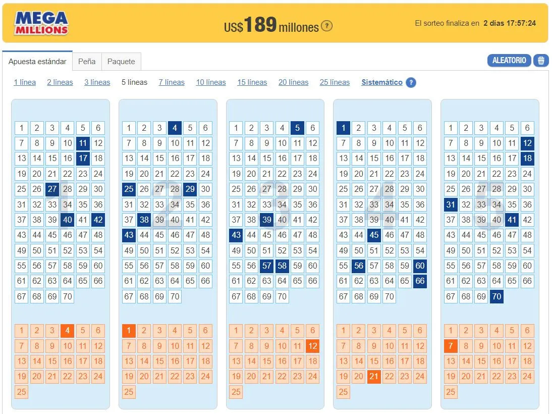 - Entra en la página del Mega Millions en TheLotter y elige tus números de la suerte: 5 números principales y un número adicional.