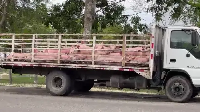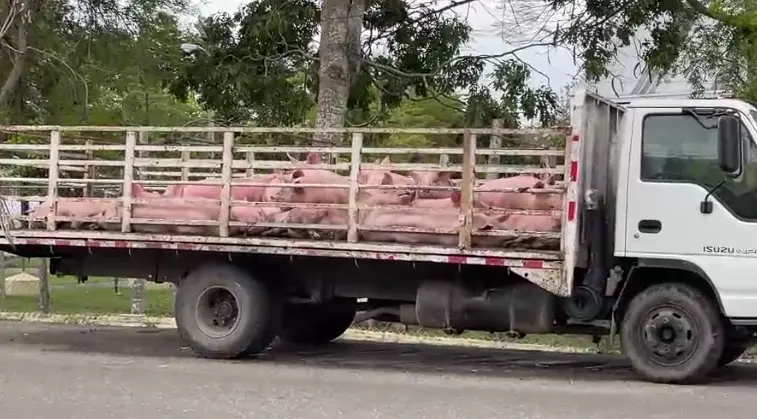Ganadería detiene camión con cerdos en Moca por error en documentación