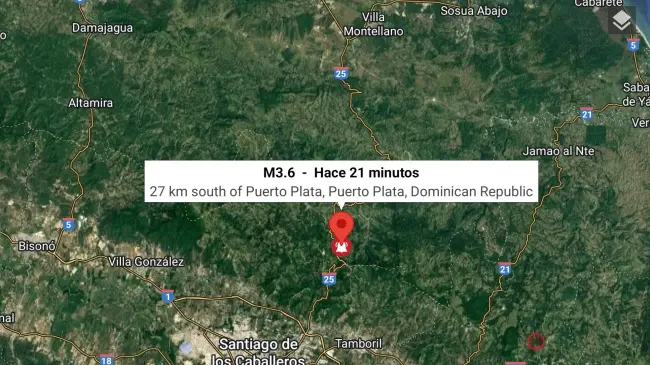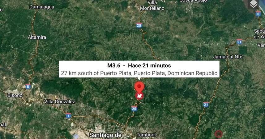 - El movimiento telúrico ocurrió a 27 kilómetros al sur de Puerto Plata y fue ampliamente sentido en toda la ciudad de Santiago, así como en diversas localidades del Cibao Central, especialmente en zonas donde predominan suelos arcillosos, los cuales amplifican la vibración sísmica.