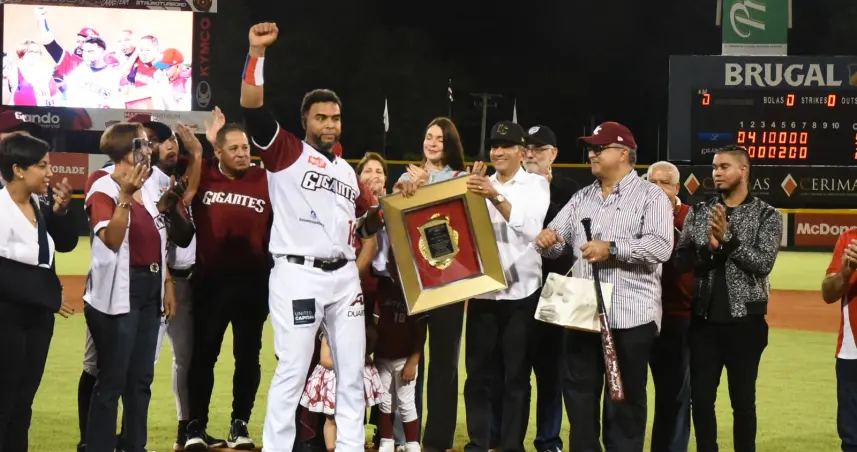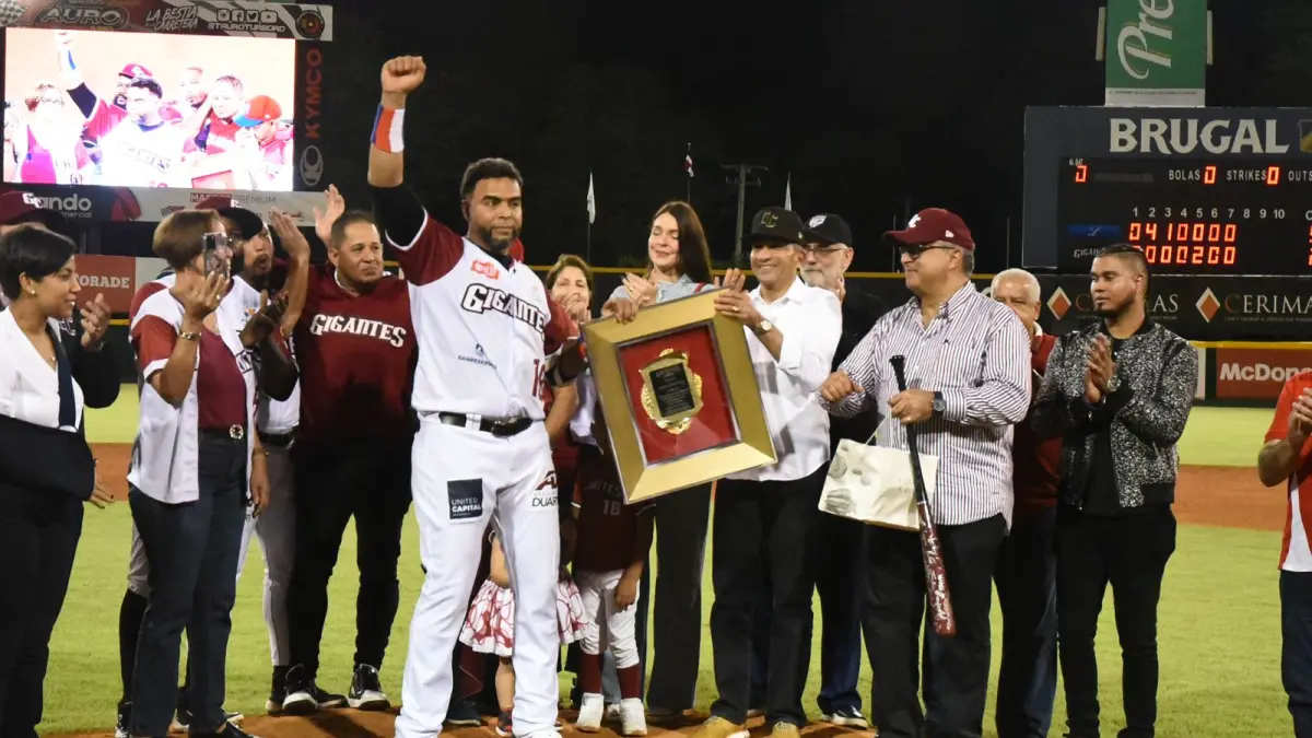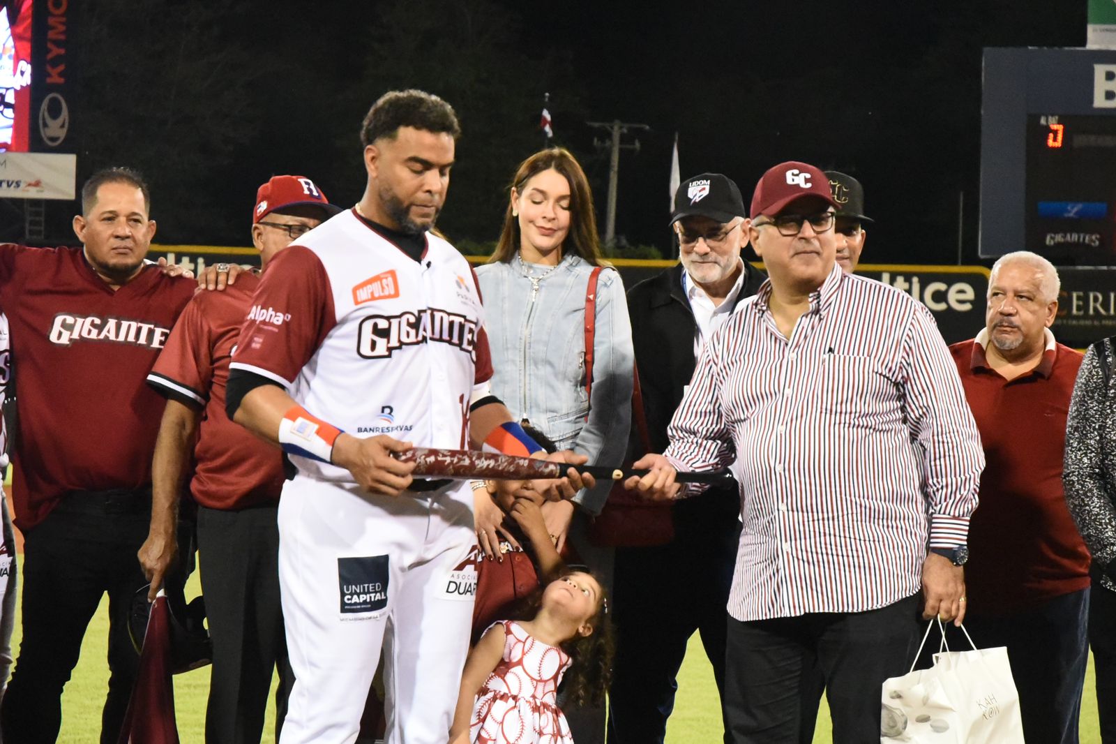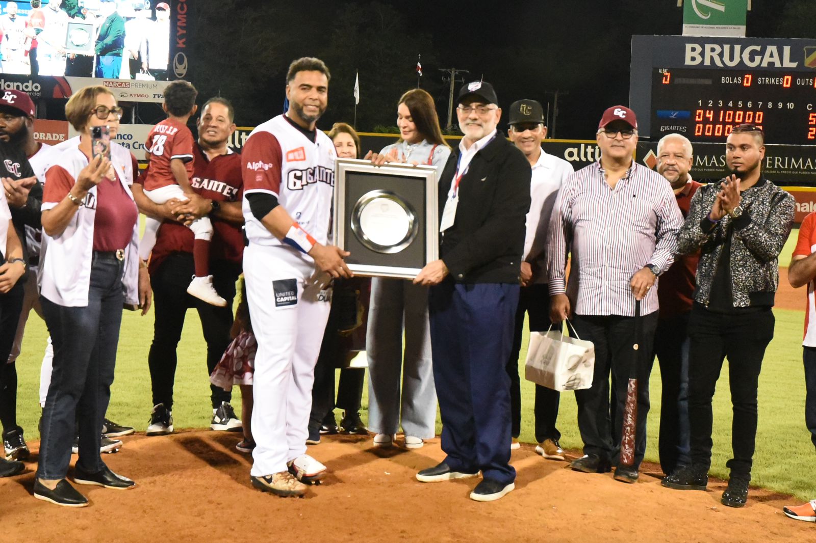 Dentro de los reconocimientos , también recibió un cuadro que retrata la actuación histórica que tuvo, cuando el miércoles 26 de noviembre del 2008 en el estadio Quisqueya, remolcó 10 carreras en un triunfo de su equipo 21-13 sobre Los Tigres del Licey.