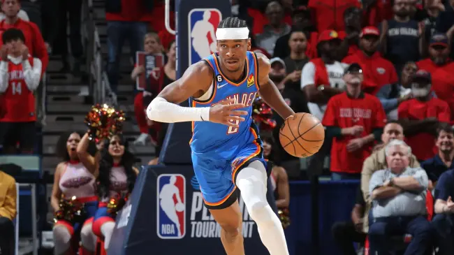 Gilgeous-Alexander encestó un triple a 16 segundos del final de la primera mitad y luego encestó un par de tiros libres a 3 segundos del final para ayudar a Oklahoma City a tomar una ventaja de 58-50. Anotó 19 puntos antes del descanso.