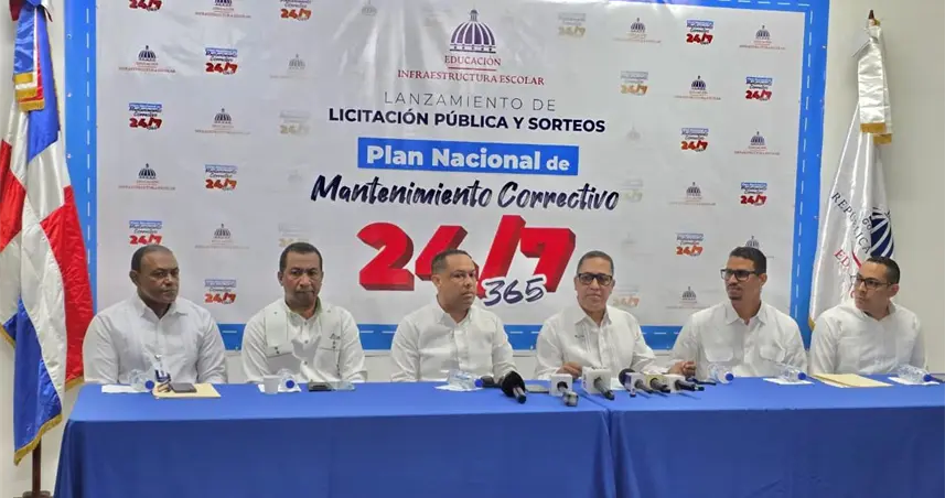 Plan 24/7-365 activa licitación mantenimiento escuelas RD 2026 para mejorar infraestructura escolar con inversión millonaria.