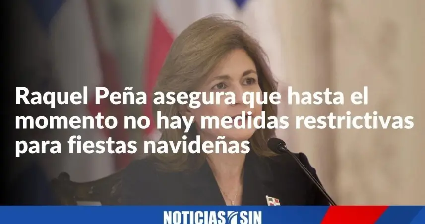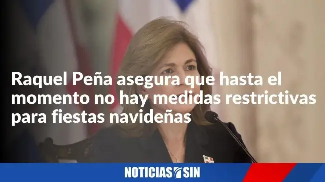 La vicepresidenta de la República Dominicana, Raquel Peña, afirmó este miércoles que hasta el momento no hay medidas restrictivas para fiestas navideñas y llamó a la población a vacunarse.