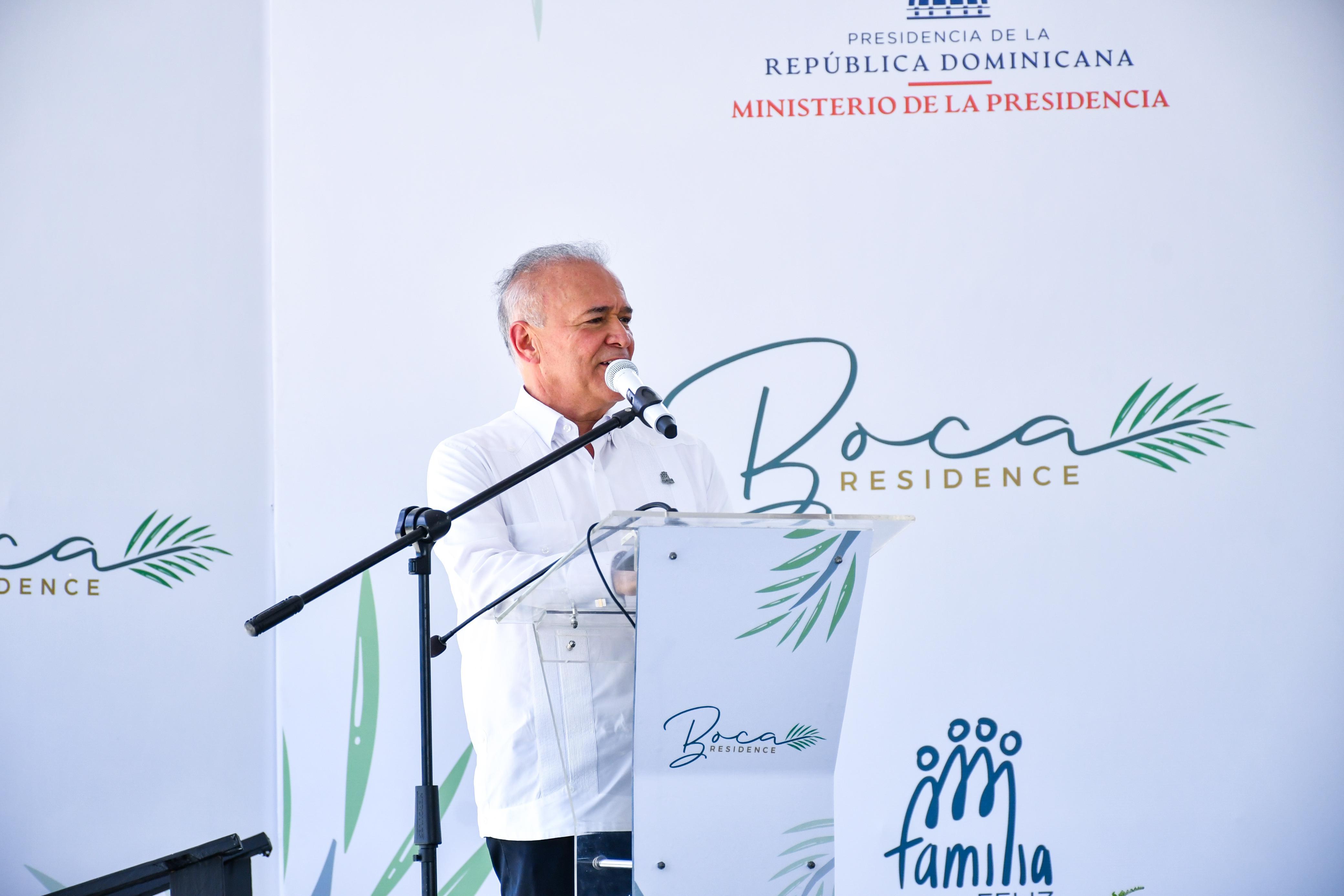 Para el Residencial Boca Residence, el Gobierno destinó más de RD$149 millones, aplicados a los bonos Inicial, ITBIS, Tasa 7 Años y el Bono Mujer, que en esta ocasión benefició a 14 jefas de hogar con un monto superior a RD$3 millones. La inversión realizada por el desarrollador ascendió a más de RD$146 millones. Los 144 apartamentos entregados corresponden a la primera etapa de un total de 176 que serán entregados.