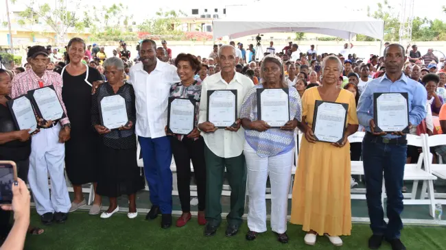 “Podemos calificar la titulación de terrenos del Estado como una de las principales políticas públicas implementadas por el Gobierno dominicano, y como dice nuestro presidente Luis Abinader: la propiedad de la tierra es un pilar fundamental en la construcción de un país próspero y justo”, dijo Santos Echavarría al dirigirse a los beneficiarios.