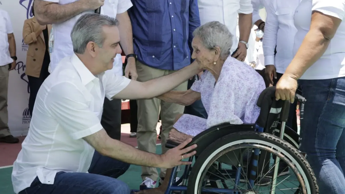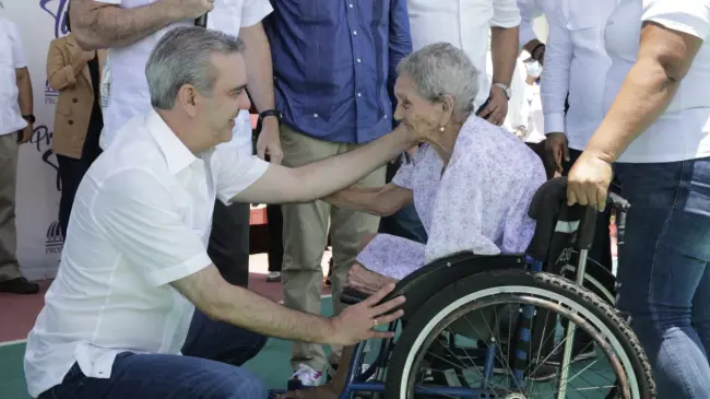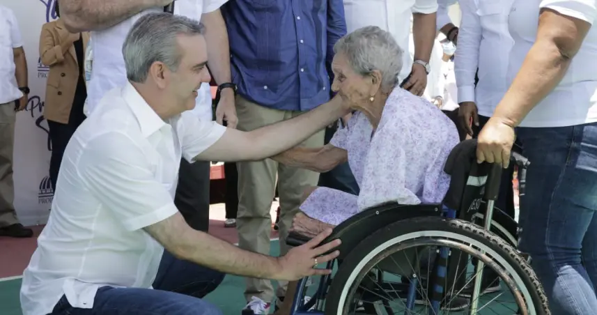 Al visitar el Politécnico Profesor Noé Brito Bruno, el mandatario recibió con alegría a la señora Altagracia De La Cruz, con 105 años de edad, quien se convirtió en la beneficiaria número 110 mil del programa Primero Tú y recibió una pensión solidaria así como la promesa de la reparación de su casa.