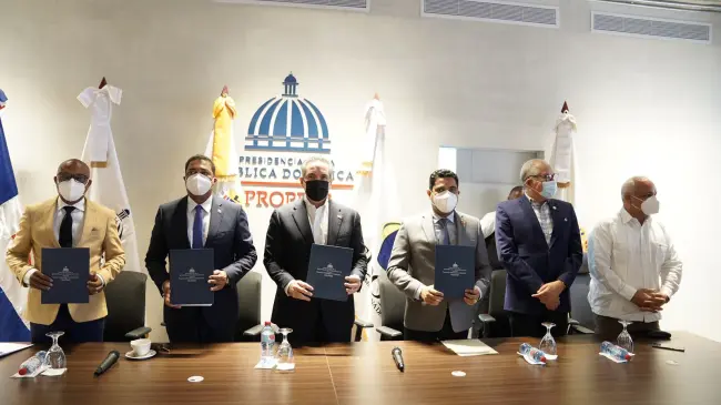 El convenio fue suscrito por el director del Propeep y el ministro sin cartera, José Leonel Cabrera; los presidentes de Fedomu y Fedodim, Kelvin Cruz y Ramón Santos, respectivamente, y el secretario general de la LMD, Víctor D` Aza. También estuvieron en la mesa principal los directores ejecutivos de Fedomu, Ángel Valentín Mercedes, y de Fedodim, Pedro Richardson.