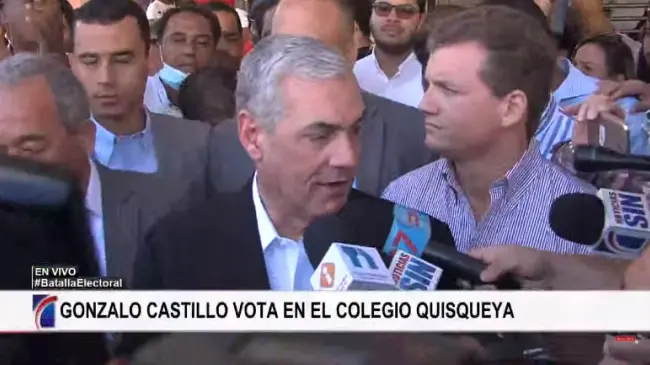 El candidato presidencial por el Partido de la Liberación Dominicana (PLD), Gonzalo Castillo, votó hoy en el Colegio Quisqueya. En esta ocasión, el aspirante se presentó al centro electoral en compañía de su esposa, a diferencia de lo ocurrido en las elecciones primaria, convocatoria a la que asistió en compañía de su madre.