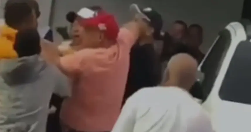 En el audiovisual se puede observar cómo dos personas se sujetaban mutuamente de manera violenta, mientras un grupo intentaba separarlos.
