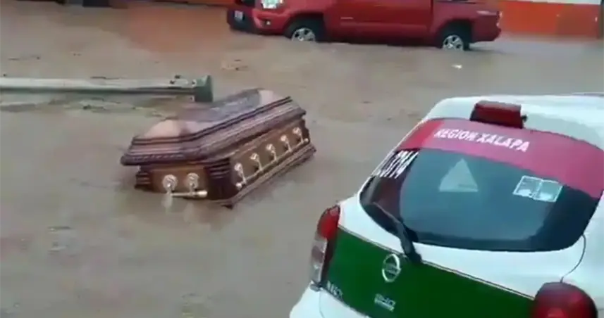 Hasta ahora los daños reportados se ubican en Cerro Azul, Atzalan, Jalacingo, San Rafael, Álamo, Papantla, Martínez De la Torre, Tlapacoyan, Tecolutla y Tuxpan. Así como Espinal, Tihuatlán, Cazones, Poza Rica, Nautla, Huayacocotla, Alto Lucero, Jilotepec, Xalapa y Las Vigas, entre otros.😱😮#Xalapa debido a las fuertes lluvias reportan que el agua ingresó a una funeraria. Las cajas se las llevo la corriente. #Veracruz #Grace pic.twitter.com/hKBTqapzev