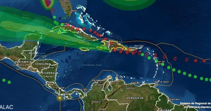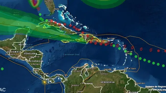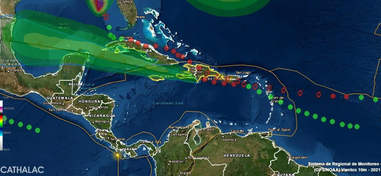 Tanto en Haití como en República Dominicana se esperan de 5 a 10 pulgadas de lluvia con totales máximos aislados de 15 pulgadas en todo el área del terreno del sur hasta el martes. Estas fuertes lluvias pueden provocar inundaciones repentinas e inundaciones urbanas y posibles deslizamientos de tierra.