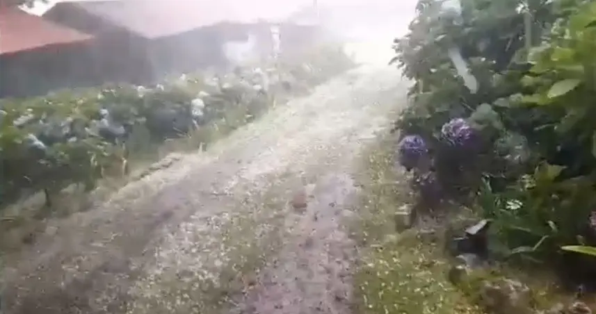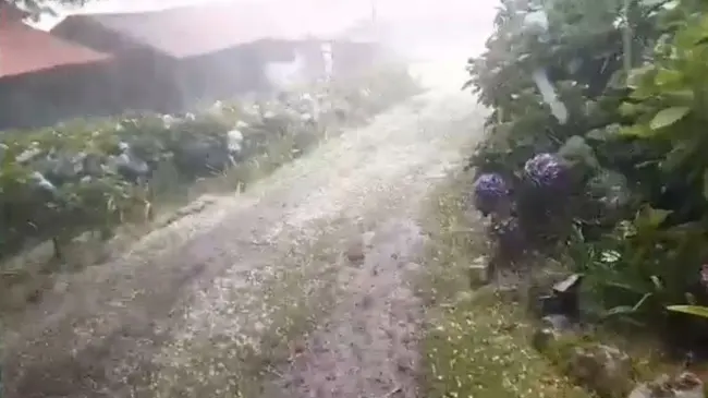 La precipitación solida se presencio en todo el entorno del complejo de Villa Pajón, incluyendo el pasto y la fuerza al estrellarse al techo de la casas.