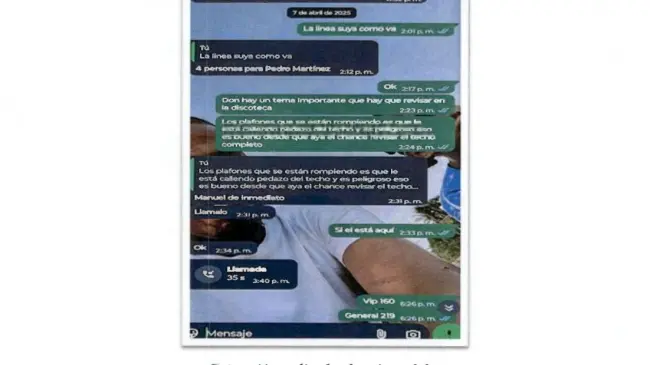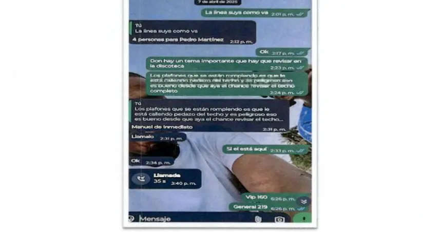 La tarde del 7 de abril de 2025, Gregory tomó su celular y le escribió directamente a Antonio Espaillat: “Don, un tema importante que hay que revisar en la discoteca... Los plafones que se están rompiendo es que le están cayendo pedazos del techo y eso es peligroso”.