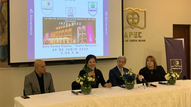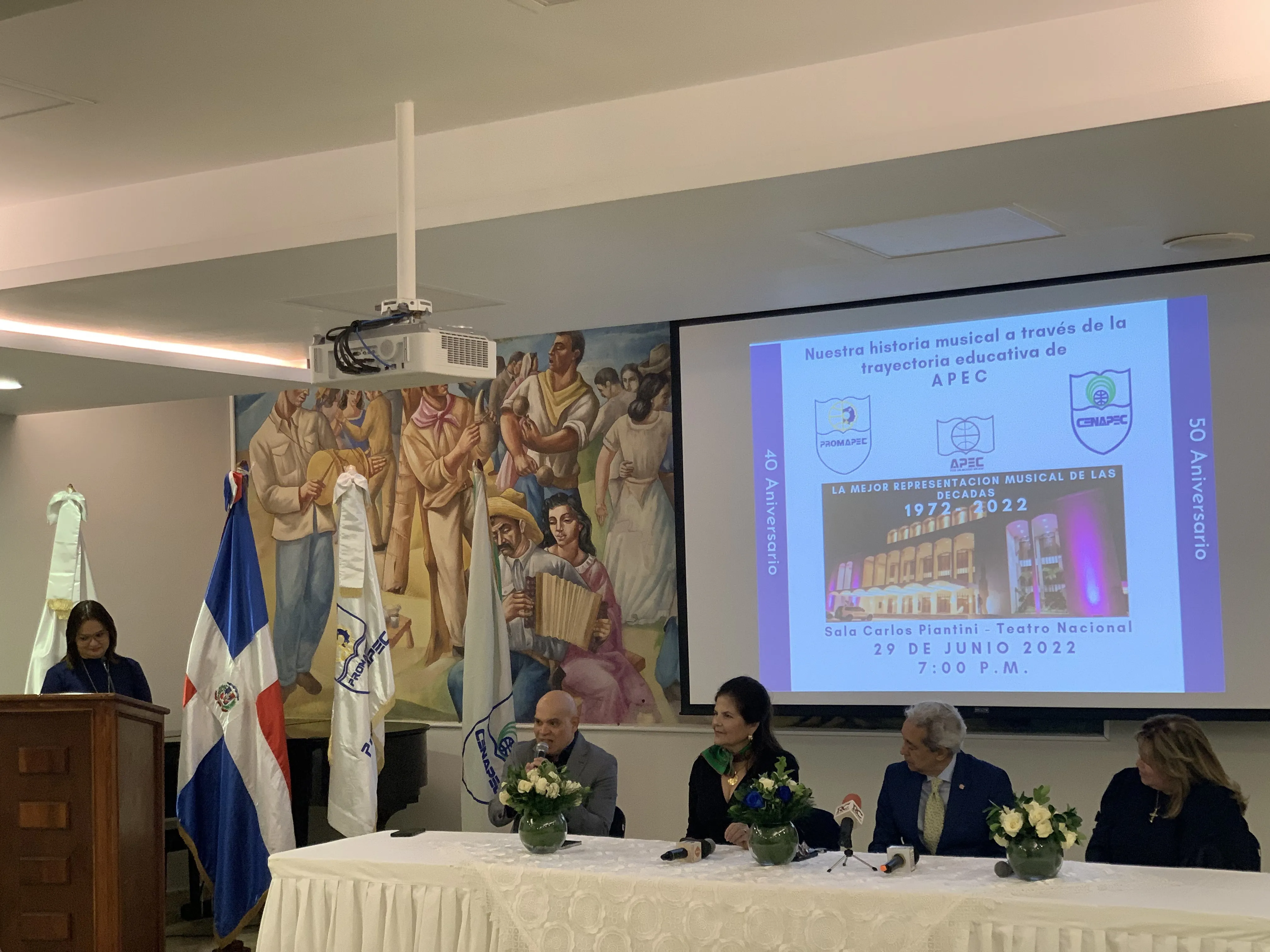 SANTO DOMINGO.- PROMAPEC Y CENAPEC instituciones pertenecientes al GRUPO APEC, llegan a sus 40 y 50 aniversario respectivamente, y para celebrarlo, este 29 de junio se contará la historia de la música dominicana cronológicamente a través de canciones por décadas, simultáneamente se destacará la evolución que lleva APEC entre 1972 y 2022.