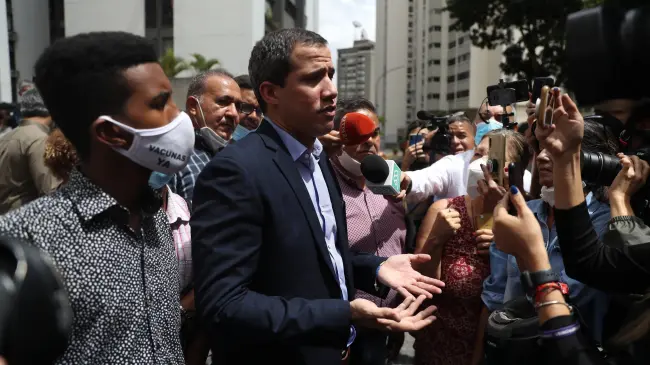 Caracas.- El líder opositor venezolano Juan Guaidó apareció este lunes, libre, en la puerta de su domicilio, poco después de que su esposa, Fabiana Rosales, denunciara que Funcionarios del grupo élite (FAES) de la Policía se encontraban en su residencia para detenerlo.