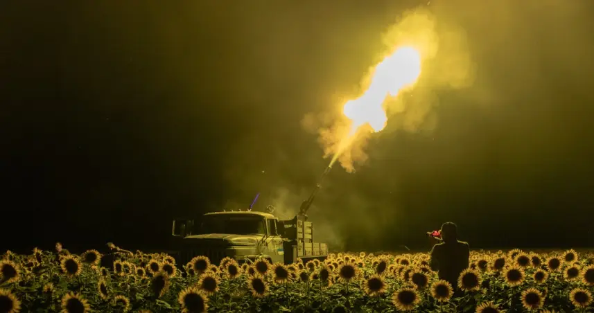 "¡Allí! ¡A tres kilómetros!", grita un militar ucraniano de una unidad de defensa antiaérea equipada con armas de la época soviética y encargada de interceptar drones rusos antes de que alcancen ciudades y pueblos ucranianos.